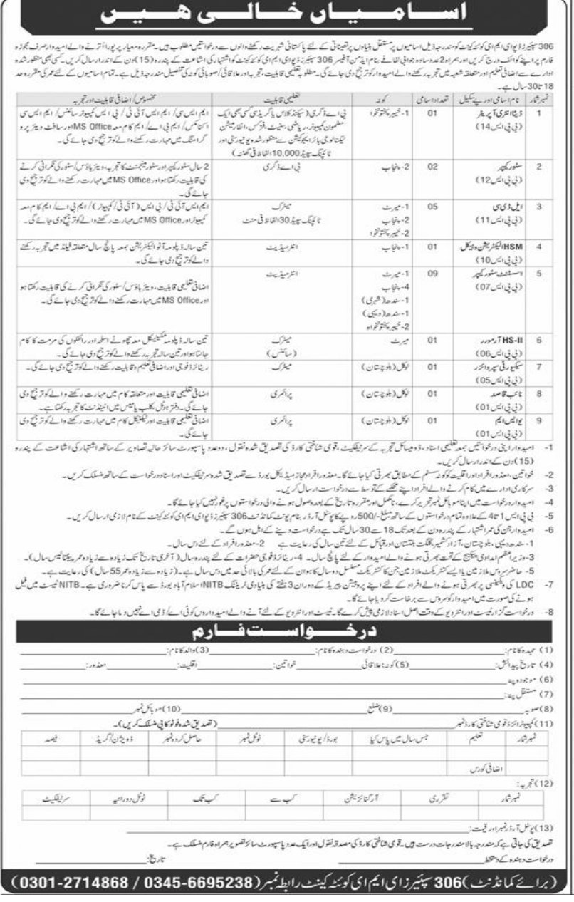 306 spirs Depot Eme Quetta Cantt Jobs 2026 announce the Contract career opportunities for the post of See Below Ad in Balochistan, Quetta for the fresh and experienced candidates on Contract basis who have Check Advertisement degree. Posted date of this post is 26/04/2026 and the last date is 11/05/2026. if you are eligible for this job apply before due date.