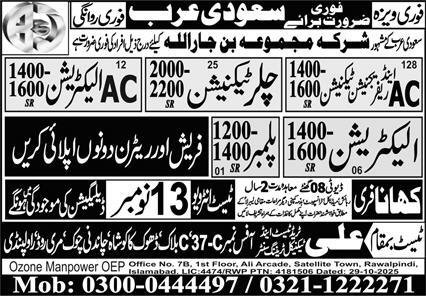 AC Technician & Chiller Technician Jobs 2025 In Saudi Arabia announce the Contract career opportunities for the post of See Below Ad in Saudi Arabia for the fresh and experienced candidates on Contract basis who have Check Advertisement degree. Posted date of this post is 06/11/2025 and the last date is 13/11/2025. if you are eligible for this job apply before due date.