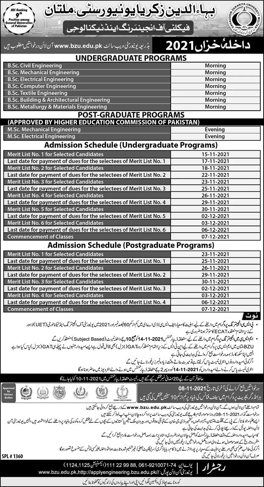 Admission Open in Bahuddin Zakariya University Multan 2025