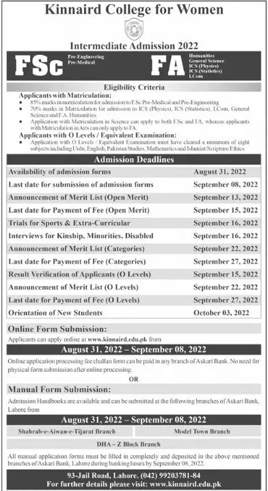 Admission in Kinnaird College For Women Lahore announce the Contract career opportunities for the post of See Below Ad in Punjab, Lahore for the fresh and experienced candidates on Contract basis who have Check Advertisement degree. Posted date of this post is 31/08/2022 and the last date is 08/09/2022. if you are eligible for this job apply before due date.