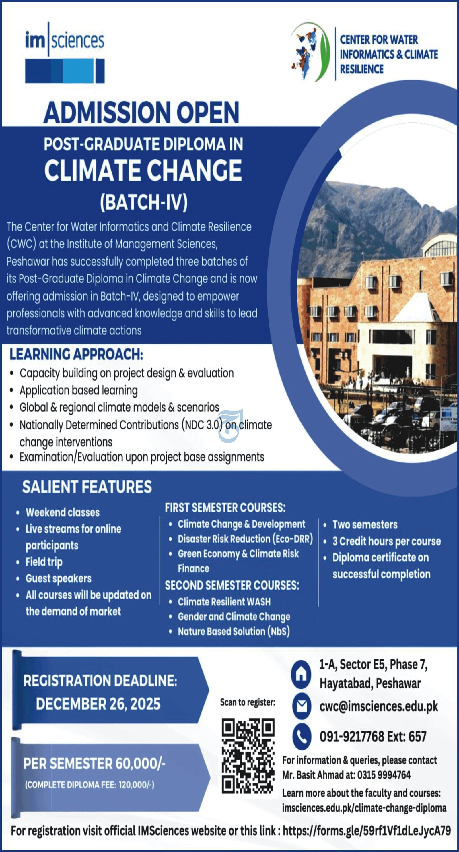 Admission Open in institute of management Sciences Peshawar announce the Contract career opportunities for the post of See Below Ad in Khyber Pakhtunkhwa, Peshawar for the fresh and experienced candidates on Contract basis who have Check Advertisement degree. Posted date of this post is 10/12/2025 and the last date is 26/12/2025. if you are eligible for this job apply before due date.