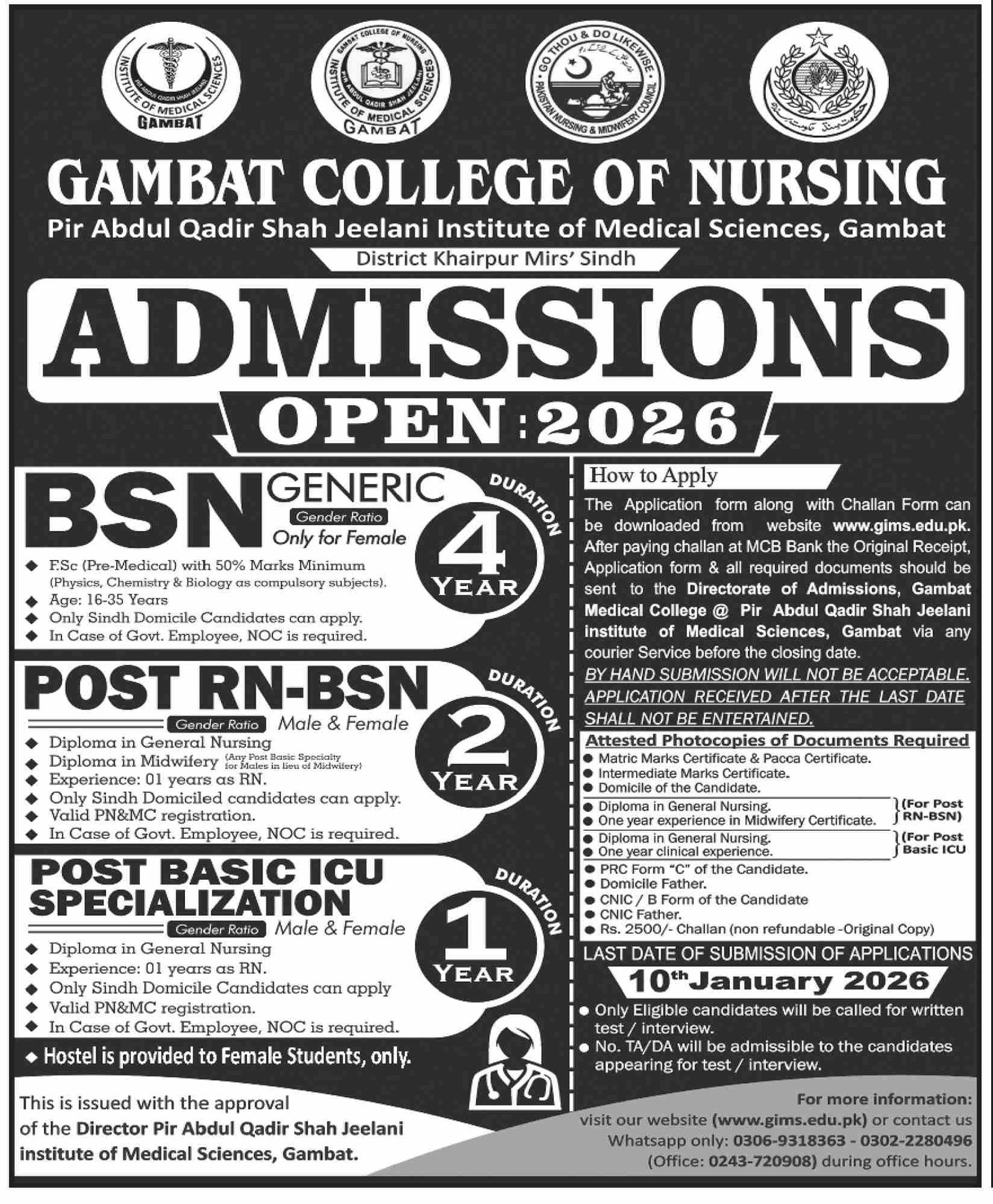 pir abdul qadir jilani institute of medical science announce the latest in different programs, details are mentioned in See Below Ad . Students from Sindh, Khairpur and other provinces of Pakistan, can apply for the . Students awaiting for the s in pir abdul qadir jilani institute of medical science can apply according the given criteria which is mentioned in the advertisement. Students awaiting results may also apply. Advertisement date is 28/12/2025 and the last date of the admission is 10/01/2026