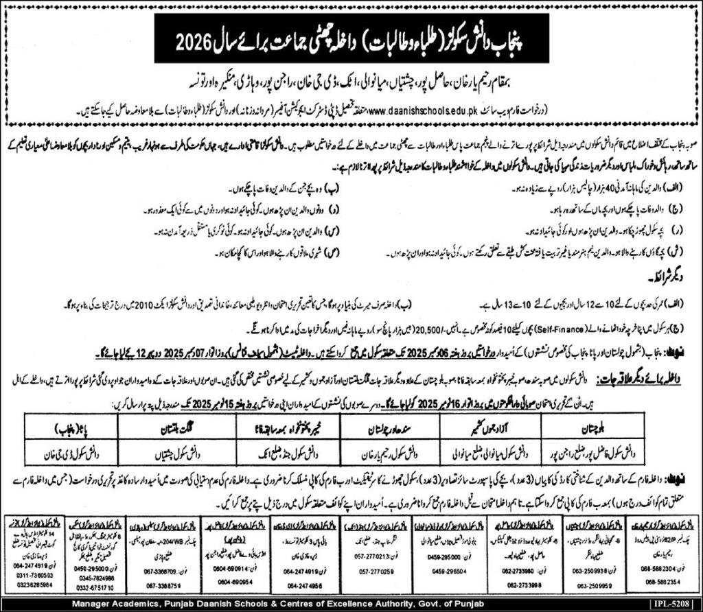 Punjab Daanish School announce the latest in different programs, details are mentioned in See Below Ad . Students from Punjab and other provinces of Pakistan, can apply for the . Students awaiting for the s in Punjab Daanish School can apply according the given criteria which is mentioned in the advertisement. Students awaiting results may also apply. Advertisement date is 15/10/2025 and the last date of the admission is 07/11/2025