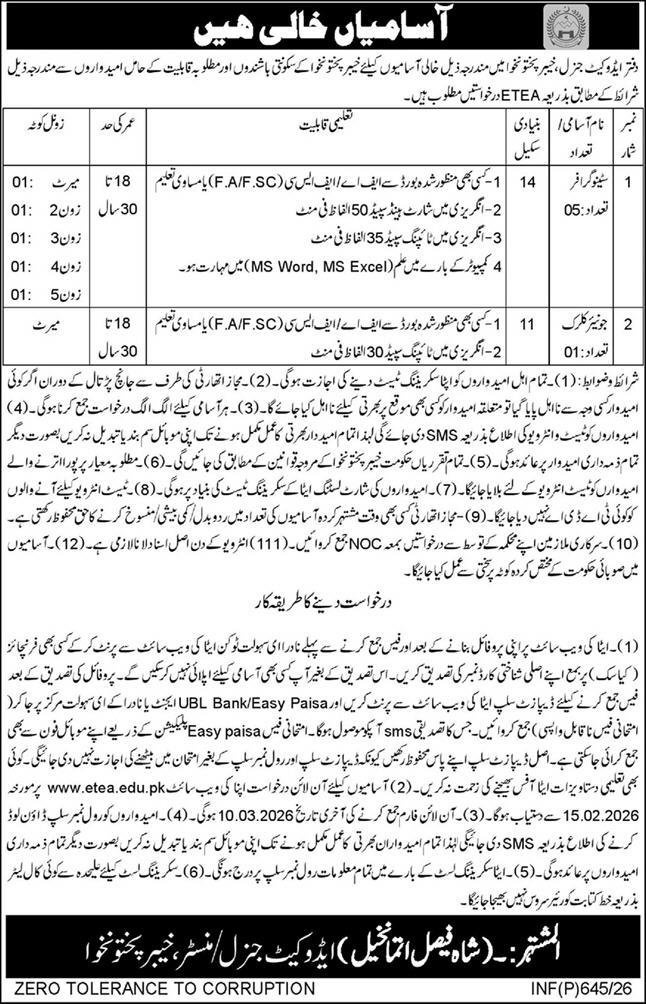 Advocate General Khyber Pakhtunkhwa Jobs 2026 announce the Contract career opportunities for the post of See Below Ad in Khyber Pakhtunkhwa, Peshawar for the fresh and experienced candidates on Contract basis who have Check Advertisement degree. Posted date of this post is 12/02/2026 and the last date is 10/03/2026. if you are eligible for this job apply before due date.