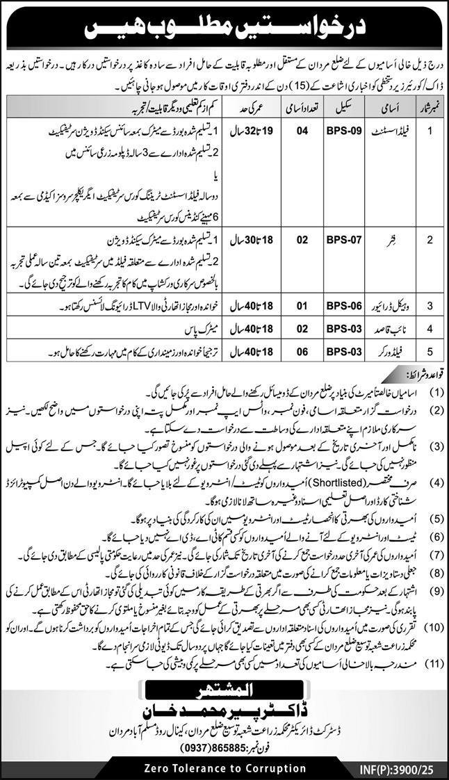 Agriculture Department mardan Jobs 2025 announce the Contract career opportunities for the post of See Below Ad in Khyber Pakhtunkhwa, Mardan for the fresh and experienced candidates on Contract basis who have Check Advertisement degree. Posted date of this post is 14/09/2025 and the last date is 29/09/2025. if you are eligible for this job apply before due date.