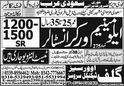 Aluminum Worker Installer Jobs Open In Saudia Arabia 2026 announce the Contract career opportunities for the post of See Below Ad in Saudi Arabia for the fresh and experienced candidates on Contract basis who have Check Advertisement degree. Posted date of this post is 26/03/2026 and the last date is 02/04/2026. if you are eligible for this job apply before due date.