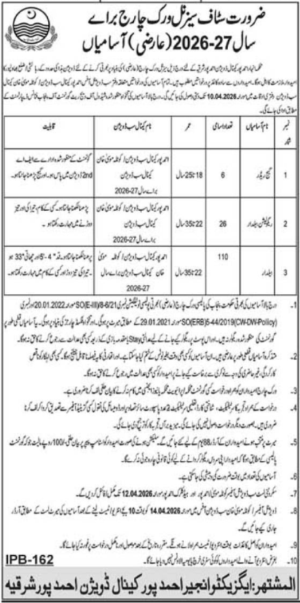 Anhar Department Ahmedpur East Jobs 2026 announce the Contract career opportunities for the post of See Below Ad in Punjab for the fresh and experienced candidates on Contract basis who have Check Advertisement degree. Posted date of this post is 28/03/2026 and the last date is 10/04/2026. if you are eligible for this job apply before due date.