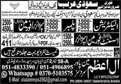 Assistant Foreman & Supervisor Jobs 2024 In Saudi Arabia announce the Contract career opportunities for the post of See Below Ad in Saudi Arabia for the fresh and experienced candidates on Contract basis who have Check Advertisement degree. Posted date of this post is 20/04/2024 and the last date is 27/04/2024. if you are eligible for this job apply before due date.