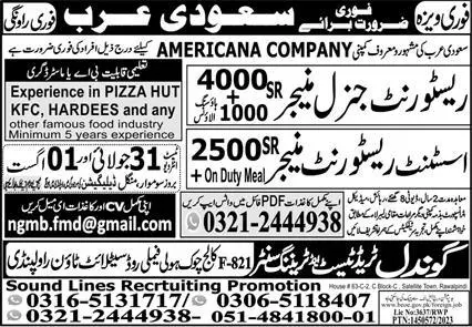 Assistant Restaurant Manager & General Manager Jobs 2023 announce the Contract career opportunities for the post of See Below Ad in Saudi Arabia for the fresh and experienced candidates on Contract basis who have Check Advertisement degree. Posted date of this post is 27/07/2023 and the last date is 01/08/2023. if you are eligible for this job apply before due date.