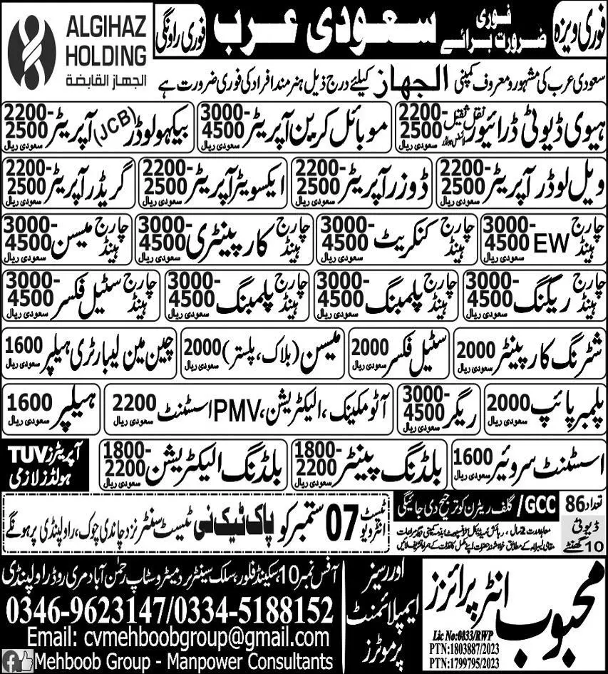 Assistant Surveyor & Chargehand Rigger Jobs 2023 in KSA announce the Contract career opportunities for the post of See Below Ad in Saudi Arabia for the fresh and experienced candidates on Contract basis who have Check Advertisement degree. Posted date of this post is 04/09/2023 and the last date is 07/09/2023. if you are eligible for this job apply before due date.