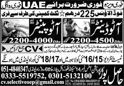 Auto Painter & Auto Denter Jobs 2023 In UAE announce the Contract career opportunities for the post of See Below Ad in United Arab Emirates for the fresh and experienced candidates on Contract basis who have Check Advertisement degree. Posted date of this post is 12/05/2023 and the last date is 18/05/2023. if you are eligible for this job apply before due date.