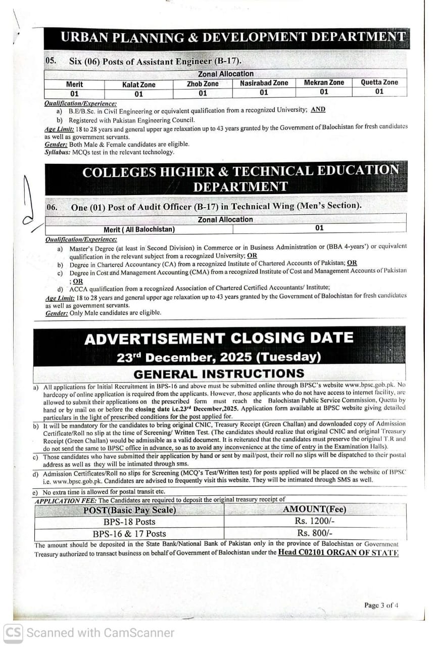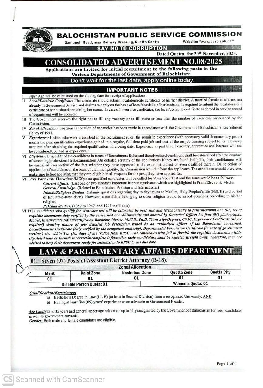 Balochistan Public Service Commission Quetta Jobs 08/2025 announce the Permanent career opportunities for the post of in Balochistan, Quetta for the fresh and experienced candidates on Permanent basis who have Check Advertisement degree. Posted date of this post is 20/11/2025 and the last date is 23/12/2025. if you are eligible for this job apply before due date.