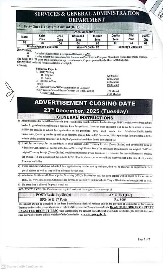Balochistan Public Service Commission Quetta Jobs 09/2025 announce the Permanent career opportunities for the post of See Below Ad in Balochistan, Quetta for the fresh and experienced candidates on Permanent basis who have Check Advertisement degree. Posted date of this post is 21/11/2025 and the last date is 23/12/2025. if you are eligible for this job apply before due date.
