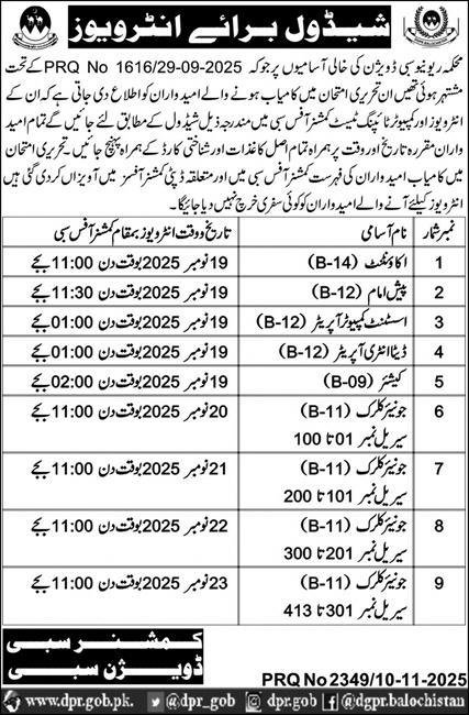 Balochistan Revenue Authority BRA Sibi Jobs Interview 2025 announce the Contract career opportunities for the post of See Below Ad in Balochistan, Sibi for the fresh and experienced candidates on Contract basis who have Check Advertisement degree. Posted date of this post is 11/11/2025 and the last date is 23/11/2025. if you are eligible for this job apply before due date.