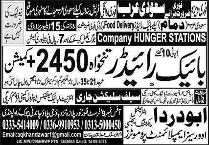 Bike Rider Jobs in Saudia Arabia 2025 announce the Contract career opportunities for the post of See Below Ad in Saudi Arabia for the fresh and experienced candidates on Contract basis who have Check Advertisement degree. Posted date of this post is 18/08/2025 and the last date is 27/08/2025. if you are eligible for this job apply before due date.