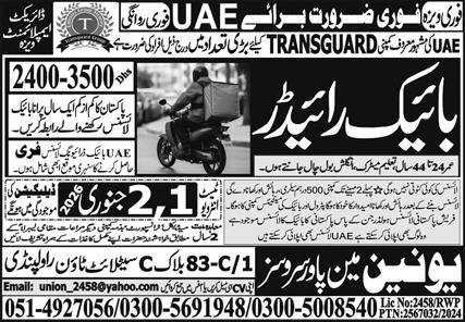Bike Rider Jobs in United Arab Emirates 2026 announce the Contract career opportunities for the post of See Below Ad in United Arab Emirates for the fresh and experienced candidates on Contract basis who have Check Advertisement degree. Posted date of this post is 30/12/2025 and the last date is 02/01/2026. if you are eligible for this job apply before due date.