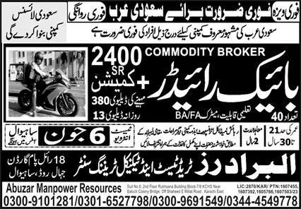 Bike Rider Jobs Open In Saudi Arabia 2023 announce the Contract career opportunities for the post of See Below Ad in Saudi Arabia for the fresh and experienced candidates on Contract basis who have Check Advertisement degree. Posted date of this post is 03/06/2023 and the last date is 06/06/2023. if you are eligible for this job apply before due date.
