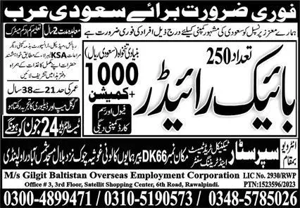Bike Rider & Rider Jobs 2023 In Saudi Arabia announce the Contract career opportunities for the post of See Below Ad in Saudi Arabia for the fresh and experienced candidates on Contract basis who have Check Advertisement degree. Posted date of this post is 23/06/2023 and the last date is 24/06/2023. if you are eligible for this job apply before due date.