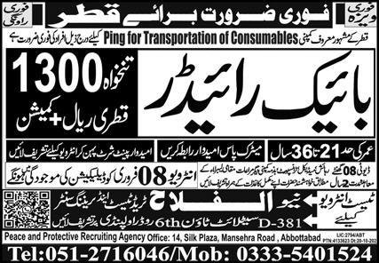 Bike Rider & Rider Jobs 2026 In Qatar announce the Contract career opportunities for the post of See Below Ad in Qatar for the fresh and experienced candidates on Contract basis who have Check Advertisement degree. Posted date of this post is 06/02/2026 and the last date is 08/02/2026. if you are eligible for this job apply before due date.