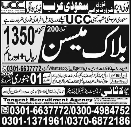 BLack Mason Jobs in Saudia Arabia 2026 announce the Contract career opportunities for the post of See Below Ad in Saudi Arabia for the fresh and experienced candidates on Contract basis who have Check Advertisement degree. Posted date of this post is 27/12/2025 and the last date is 01/01/2026. if you are eligible for this job apply before due date.
