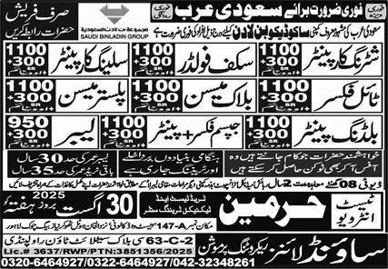 Block Mason And Labours Jobs in Saudia Arabia 2025 announce the Contract career opportunities for the post of See Below Ad in Saudi Arabia for the fresh and experienced candidates on Contract basis who have Check Advertisement degree. Posted date of this post is 14/08/2025 and the last date is 30/08/2025. if you are eligible for this job apply before due date.