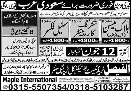 Block Mason & Shuttering Carpenter Jobs In Saudi Arabia 2023 announce the Contract career opportunities for the post of See Below Ad in Saudi Arabia for the fresh and experienced candidates on Contract basis who have Check Advertisement degree. Posted date of this post is 10/06/2023 and the last date is 12/06/2023. if you are eligible for this job apply before due date.