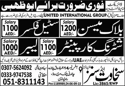 Block Mason & Steel Fixer Jobs 2023 in UAE