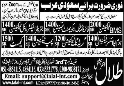 BMS Technician & Generator Electrical Technician Jobs 2023 announce the Contract career opportunities for the post of See Below Ad in Saudi Arabia for the fresh and experienced candidates on Contract basis who have Check Advertisement degree. Posted date of this post is 21/06/2023 and the last date is 28/06/2023. if you are eligible for this job apply before due date.