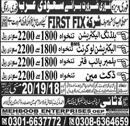 Building Electrician & Electrician Low Current Jobs 2023 announce the Contract career opportunities for the post of See Below Ad in Saudi Arabia for the fresh and experienced candidates on Contract basis who have Check Advertisement degree. Posted date of this post is 16/05/2023 and the last date is 20/05/2023. if you are eligible for this job apply before due date.