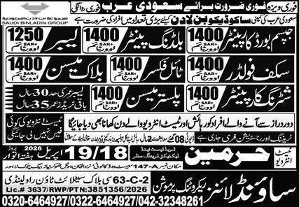 Building Painter And Plaster Mason Jobs In Saudi Arabia announce the Contract career opportunities for the post of See Below Ad in Saudi Arabia for the fresh and experienced candidates on Contract basis who have Check Advertisement degree. Posted date of this post is 12/04/2026 and the last date is 19/04/2026. if you are eligible for this job apply before due date.