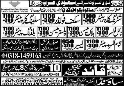 Building Painter & Block Mason Jobs 2025 In Saudi Arabia announce the Contract career opportunities for the post of See Below Ad in Saudi Arabia for the fresh and experienced candidates on Contract basis who have Check Advertisement degree. Posted date of this post is 22/08/2025 and the last date is 10/09/2025. if you are eligible for this job apply before due date.