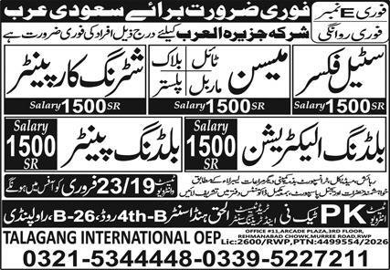 Building Painter & Block Mason Jobs 2026 In Saudi Arabia announce the Contract career opportunities for the post of See Below Ad in Saudi Arabia for the fresh and experienced candidates on Contract basis who have Check Advertisement degree. Posted date of this post is 19/02/2026 and the last date is 23/02/2026. if you are eligible for this job apply before due date.