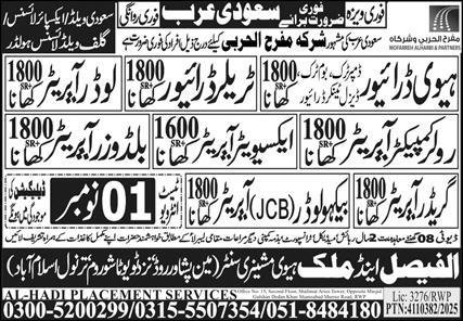 Bulldozer Operator & Loader Operator Jobs 2025 announce the Contract career opportunities for the post of See Below Ad in Saudi Arabia for the fresh and experienced candidates on Contract basis who have Check Advertisement degree. Posted date of this post is 31/10/2025 and the last date is 01/11/2025. if you are eligible for this job apply before due date.