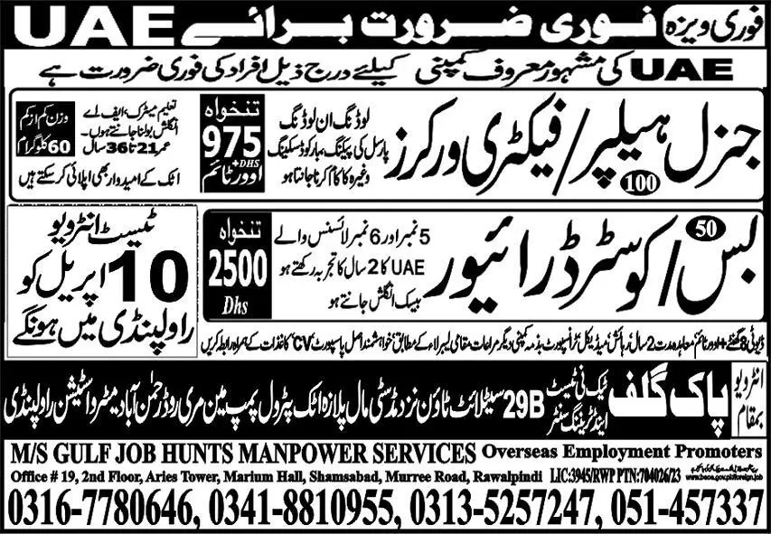 Bus Driver & Coaster Driver Jobs 2023 in UAE announce the Contract career opportunities for the post of See Below Ad in Abu Dhabi for the fresh and experienced candidates on Contract basis who have Check Advertisement degree. Posted date of this post is 06/04/2023 and the last date is 10/04/2023. if you are eligible for this job apply before due date.