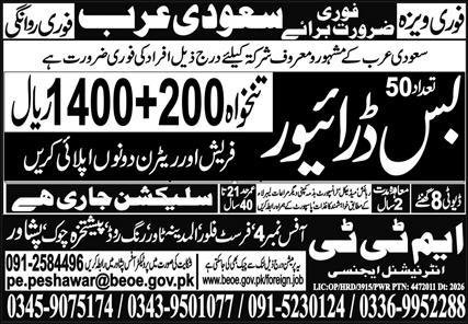Bus Driver Jobs in Saudia Arabia 2026 announce the Contract career opportunities for the post of See Below Ad in Saudi Arabia for the fresh and experienced candidates on Contract basis who have Check Advertisement degree. Posted date of this post is 30/03/2026 and the last date is 11/04/2026. if you are eligible for this job apply before due date.