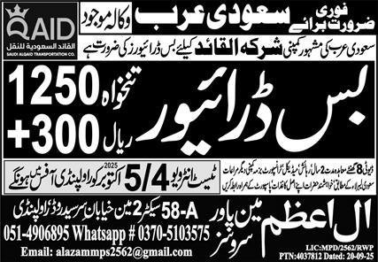 Bus Driver Jobs Open In Saudi Arabia 2025 announce the Contract career opportunities for the post of See Below Ad in Saudi Arabia for the fresh and experienced candidates on Contract basis who have Check Advertisement degree. Posted date of this post is 04/10/2025 and the last date is 05/10/2025. if you are eligible for this job apply before due date.