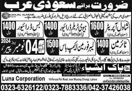 Bus Driver & Labor Foreman Jobs 2024 In Saudi Arabia announce the Contract career opportunities for the post of See Below Ad in Saudi Arabia for the fresh and experienced candidates on Contract basis who have Check Advertisement degree. Posted date of this post is 02/11/2024 and the last date is 04/11/2024. if you are eligible for this job apply before due date.