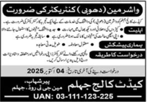 Cadet College Jhelum Punjab Jobs 2025 announce the Contract career opportunities for the post of See Below Ad in Punjab, Jhelum for the fresh and experienced candidates on Contract basis who have Check Advertisement degree. Posted date of this post is 21/09/2025 and the last date is 04/10/2025. if you are eligible for this job apply before due date.