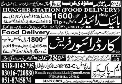 Car Driver & Food Delivery Rider Jobs 2024 In Saudi Arabia announce the Contract career opportunities for the post of See Below Ad in Saudi Arabia for the fresh and experienced candidates on Contract basis who have Check Advertisement degree. Posted date of this post is 25/06/2024 and the last date is 28/06/2024. if you are eligible for this job apply before due date.