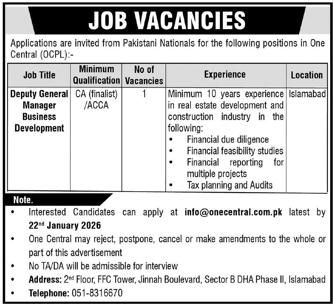 Central OCPL Islamabad Jobs 2025 announce the Contract career opportunities for the post of See Below Ad in Federal, Islamabad for the fresh and experienced candidates on Contract basis who have Check Advertisement degree. Posted date of this post is 25/12/2025 and the last date is 22/01/2026. if you are eligible for this job apply before due date.