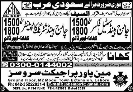 Chargehand Shuttering Carpenter & Chargehand Steel Fixer Job announce the Contract career opportunities for the post of See Below Ad in Saudi Arabia for the fresh and experienced candidates on Contract basis who have Check Advertisement degree. Posted date of this post is 28/03/2026 and the last date is 04/04/2026. if you are eligible for this job apply before due date.