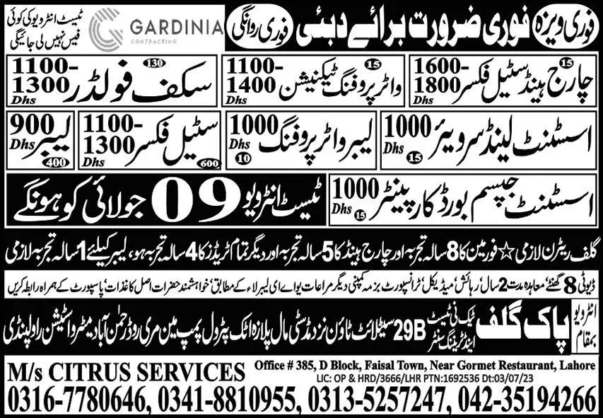 Chargehand Steel Fixer & Labor Water Proofing Jobs UAE 2023 announce the Contract career opportunities for the post of See Below Ad in United Arab Emirates for the fresh and experienced candidates on Contract basis who have Check Advertisement degree. Posted date of this post is 06/07/2023 and the last date is 09/07/2023. if you are eligible for this job apply before due date.