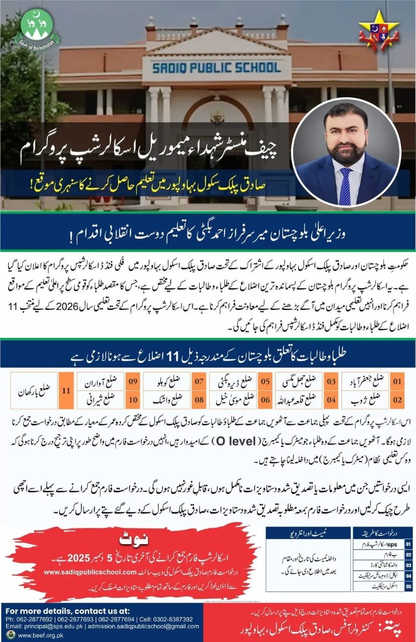 Chief Minister's Martyrs Memorial Scholarship Program 2025 announce the Contract career opportunities for the post of See Below Ad in Balochistan for the fresh and experienced candidates on Contract basis who have Check Advertisement degree. Posted date of this post is 05/11/2025 and the last date is 05/12/2025. if you are eligible for this job apply before due date.