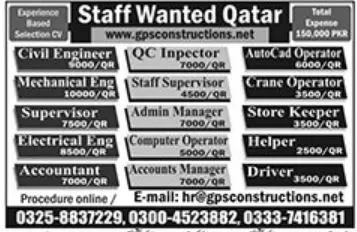 Civil Engineer & Mechanical Engineer Jobs 2023 in Qatar announce the Contract career opportunities for the post of See Below Ad in Qatar for the fresh and experienced candidates on Contract basis who have Check Advertisement degree. Posted date of this post is 25/03/2023 and the last date is 01/04/2023. if you are eligible for this job apply before due date.