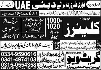 Cleaner Jobs in Dubai 2025 announce the Contract career opportunities for the post of See Below Ad in Dubai for the fresh and experienced candidates on Contract basis who have Check Advertisement degree. Posted date of this post is 27/12/2025 and the last date is 03/01/2026. if you are eligible for this job apply before due date.