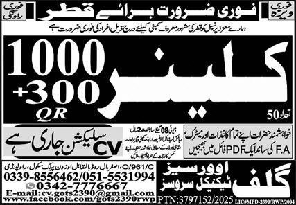 Cleaner Jobs in Qatar 2025 announce the Contract career opportunities for the post of See Below Ad in Qatar for the fresh and experienced candidates on Contract basis who have Check Advertisement degree. Posted date of this post is 03/10/2025 and the last date is 24/10/2025. if you are eligible for this job apply before due date.