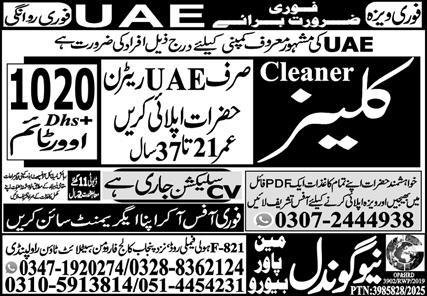 Cleaner Jobs in United Arab Emerities 2025 announce the Contract career opportunities for the post of See Below Ad in United Arab Emirates for the fresh and experienced candidates on Contract basis who have Check Advertisement degree. Posted date of this post is 10/10/2025 and the last date is 17/10/2025. if you are eligible for this job apply before due date.