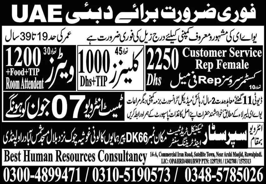 Cleaner & Waiter Jobs In Dubai UAE 2023 announce the Contract career opportunities for the post of See Below Ad in United Arab Emirates for the fresh and experienced candidates on Contract basis who have Check Advertisement degree. Posted date of this post is 04/06/2023 and the last date is 07/06/2023. if you are eligible for this job apply before due date.