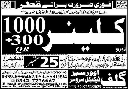 Cleaners Jobs in Saudia Arabia 2025 announce the Contract career opportunities for the post of See Below Ad in Saudi Arabia for the fresh and experienced candidates on Contract basis who have Check Advertisement degree. Posted date of this post is 23/09/2025 and the last date is 25/09/2025. if you are eligible for this job apply before due date.