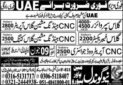 CNC Bending Machine Glass Operator Jobs 2023 In UAE announce the Contract career opportunities for the post of See Below Ad in United Arab Emirates for the fresh and experienced candidates on Contract basis who have Graduation degree. Posted date of this post is 08/06/2023 and the last date is 09/06/2023. if you are eligible for this job apply before due date.